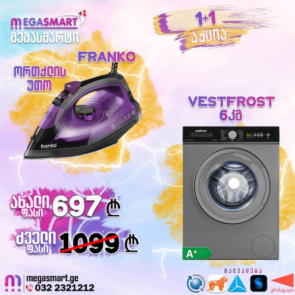 VestFrost 6კგ ნაცრისფერი VW612FT0S საჩუქრად უთო Franko FSI-1190