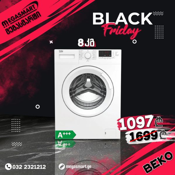 Black Friday აქცია! სარეცხი მანქანა Beko 8კგ